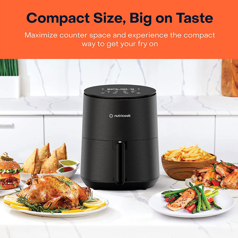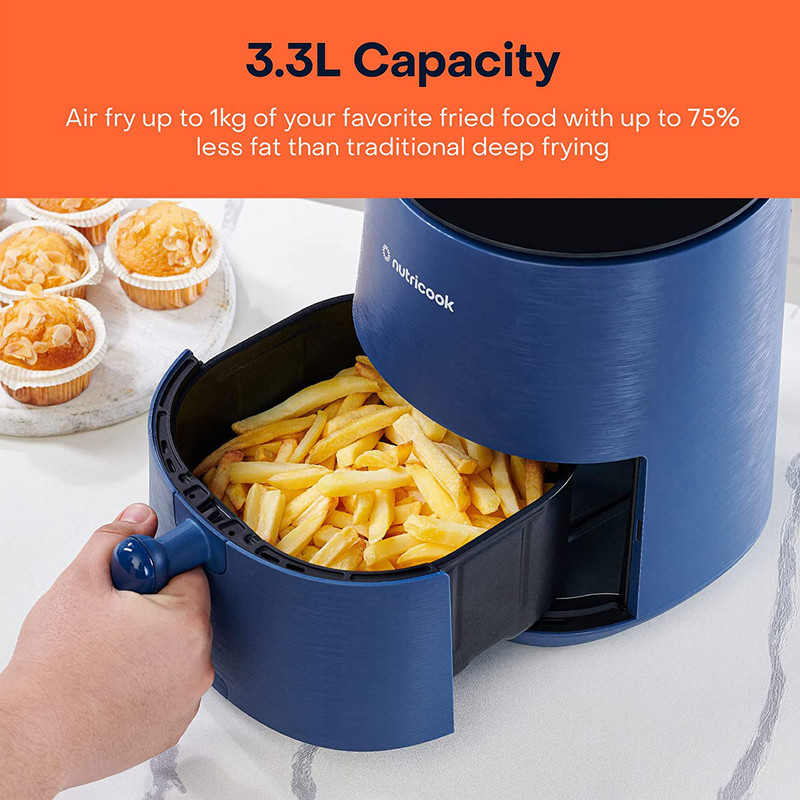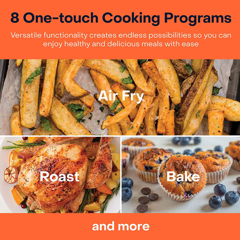 | سایر توضیحات | ظرفیت سبد 3.3 لیتر / دارای 8 برنامه پخت و پز شامل ( 4 برنامه اصلی – سرخ کردن با هوا، پخت، برشته و گرم کردن و 4 برنامه از پیش تنظیم شده – سیب زمینی سرخ کرده، مرغ، برگر و استیک ) / سبد با روکش نچسب و فاقد PFOA/BPA / دارای فناوری SMARTTEMP TECHNOLOGY / |